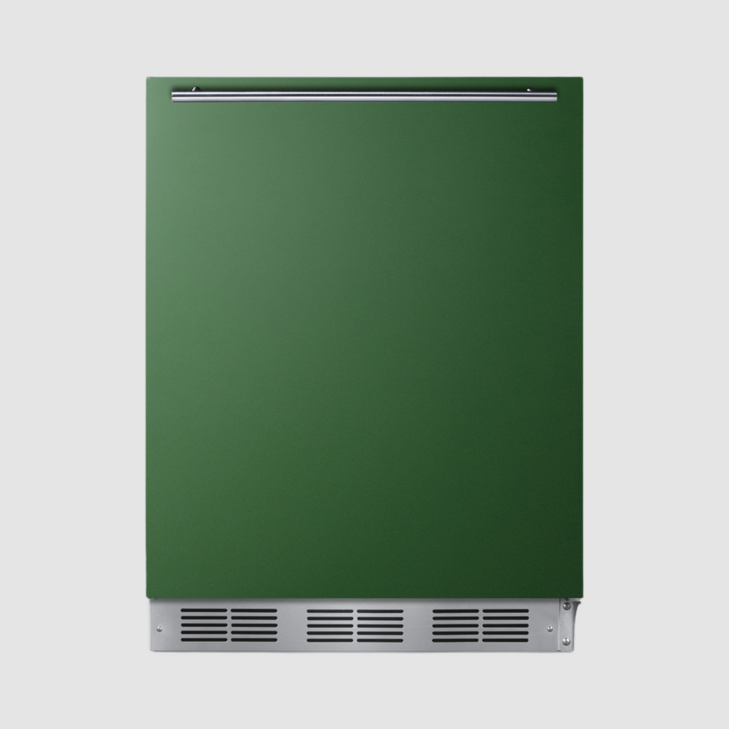 Make a bold statement in any kitchen with the Summit BAR611WHGADA, featuring a vivid emerald green door and sleek stainless steel detailing. Sized at 32” high, this 24” wide all-refrigerator is ADA compliant and perfect for stylish, accessible spaces. Inside, enjoy 5.5 cu. ft. of efficient, low-maintenance cold storage with flexible shelving and storage options.
