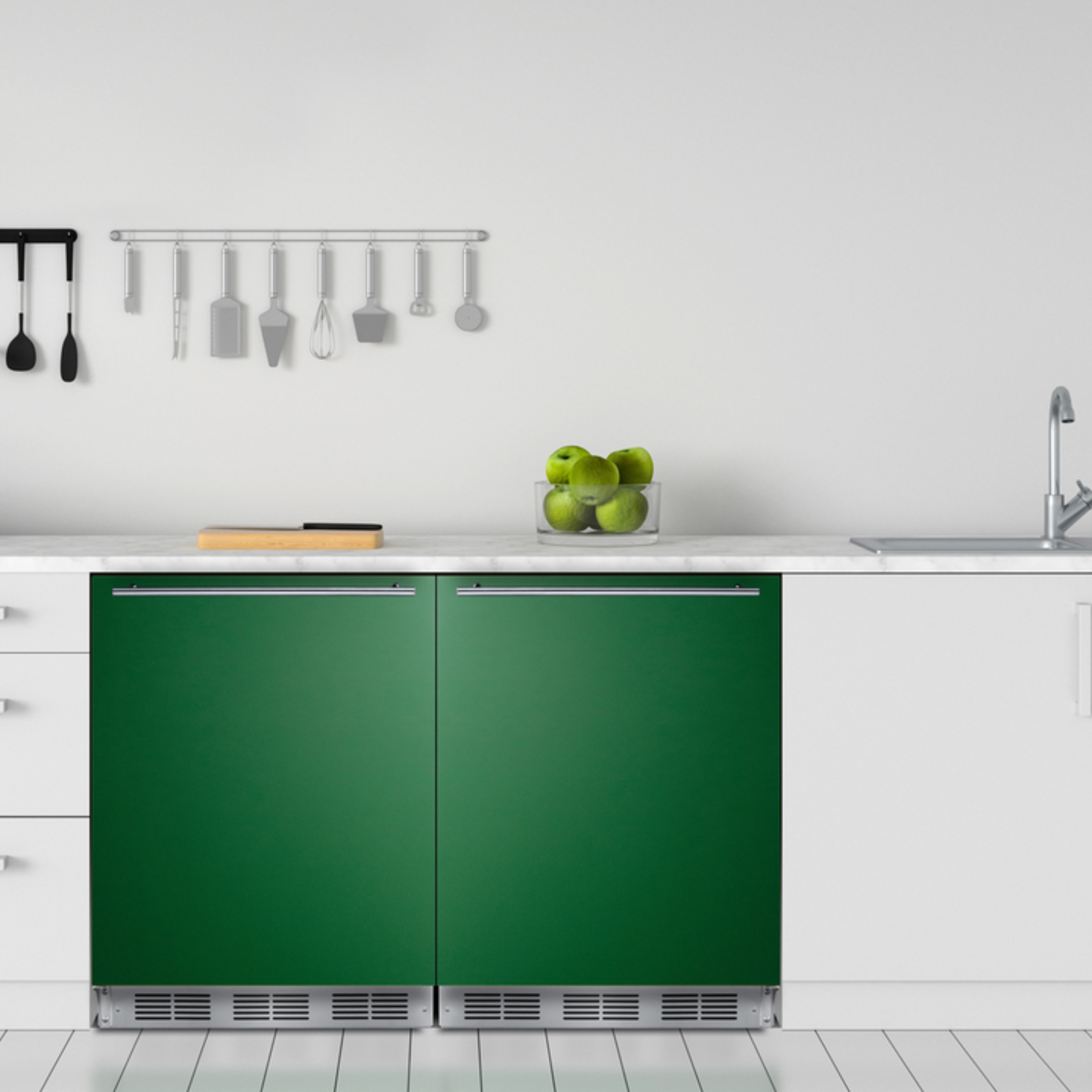 | Finish | Emerald green door, white cabinet, stainless handle & kickplate |
